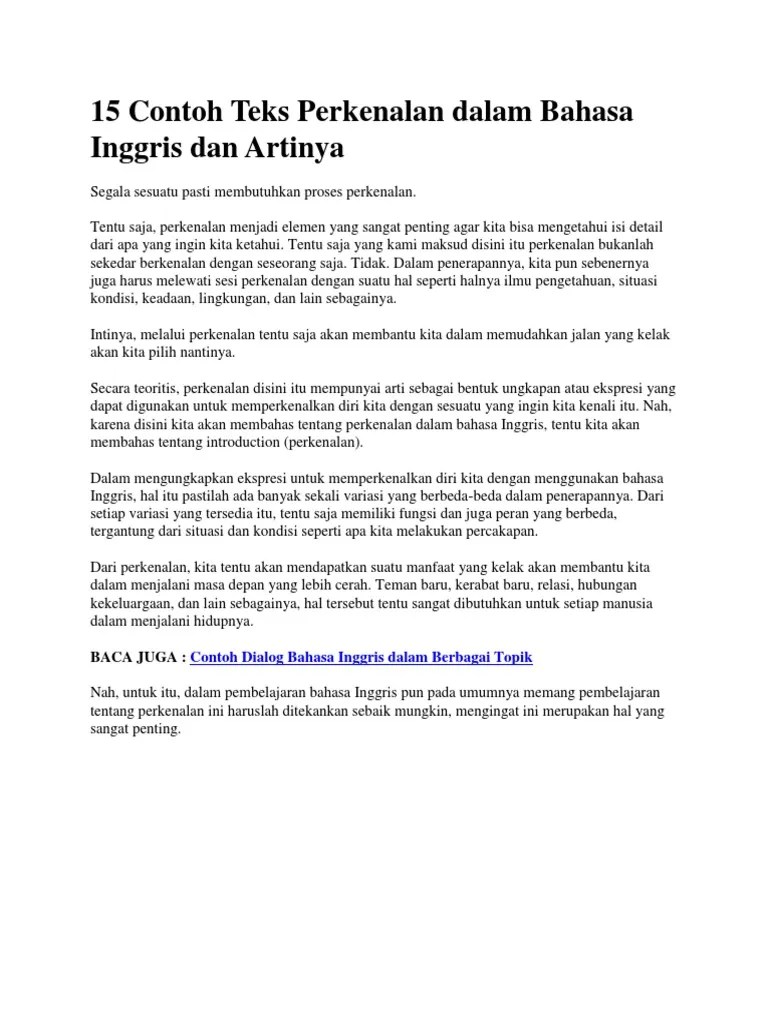 Dalam melakukan perkenalan diri atau self introduction dalam bahasa. Perkenalan diri dalam bahasa inggris dan artinya. Saya berasal dari tuban, jawa timur. 5 contoh perkenalan diri dalam bahasa . Nah biar lebih jelas, berikut adalah contoh teks perkenalan dalam bahasa inggris .