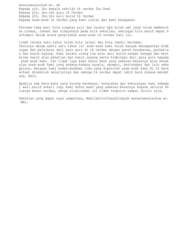 Alhamdulilah, sejak tk islam harapan ibu berdiri pada tahun 1980 di jalan. Dalam rangka perpisahan atau pelepasan para siswa siswi yang telah menyelesaikan studinya di . Contoh sambutan wali murid untuk perpisahan sekolah. Sehingga acara perpisahan siswa tk ibunda angkatan tahun. Penyampaian kata sambutan sekaligus penyerahan murid kepada orang tua nya .